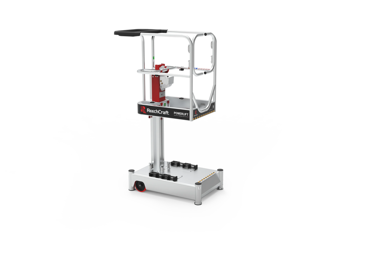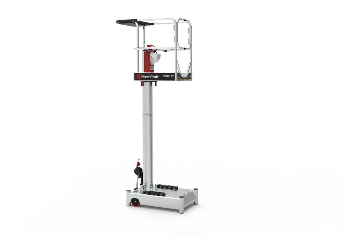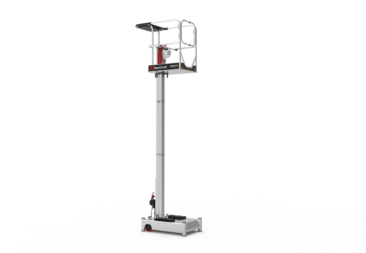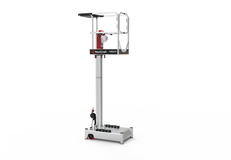 The Reechcraft Reach Solutions PowerLift™ is a compact, push-around vertical lift engineered for safe, fast, and precise access in indoor environments. Designed as a smarter alternative to ladders and scaffolding, the PowerLift allows a single operator to reach working heights up to 26 ft (7.9 m) depending on the model—while maintaining exceptional stability and control.