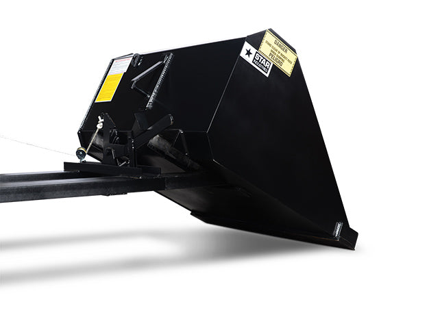 The manual self-dump models feature a simple latch system that allows the operator to release and reset the bucket directly from the driver’s seat — no additional hydraulics required. For even greater productivity, the hydraulic self-dump versions use a built-in hydraulic cylinder for smooth, controlled operation from the cab, making them ideal for continuous-duty applications.