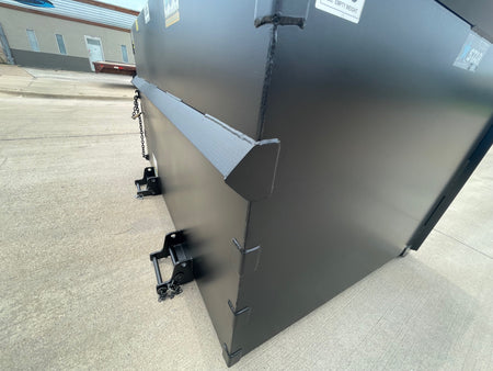 Safety Chain & Locking Hook: 3′ chain with grab hook secures hopper to forklift carriage as a secondary safety measure.