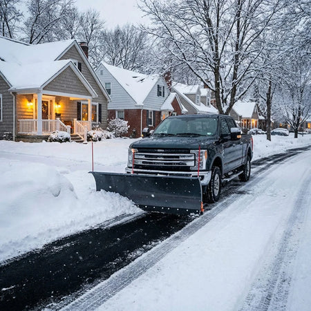 Built for residential and light-commercial use, these plows provide controlled snow pushing without the complexity of hydraulic systems.